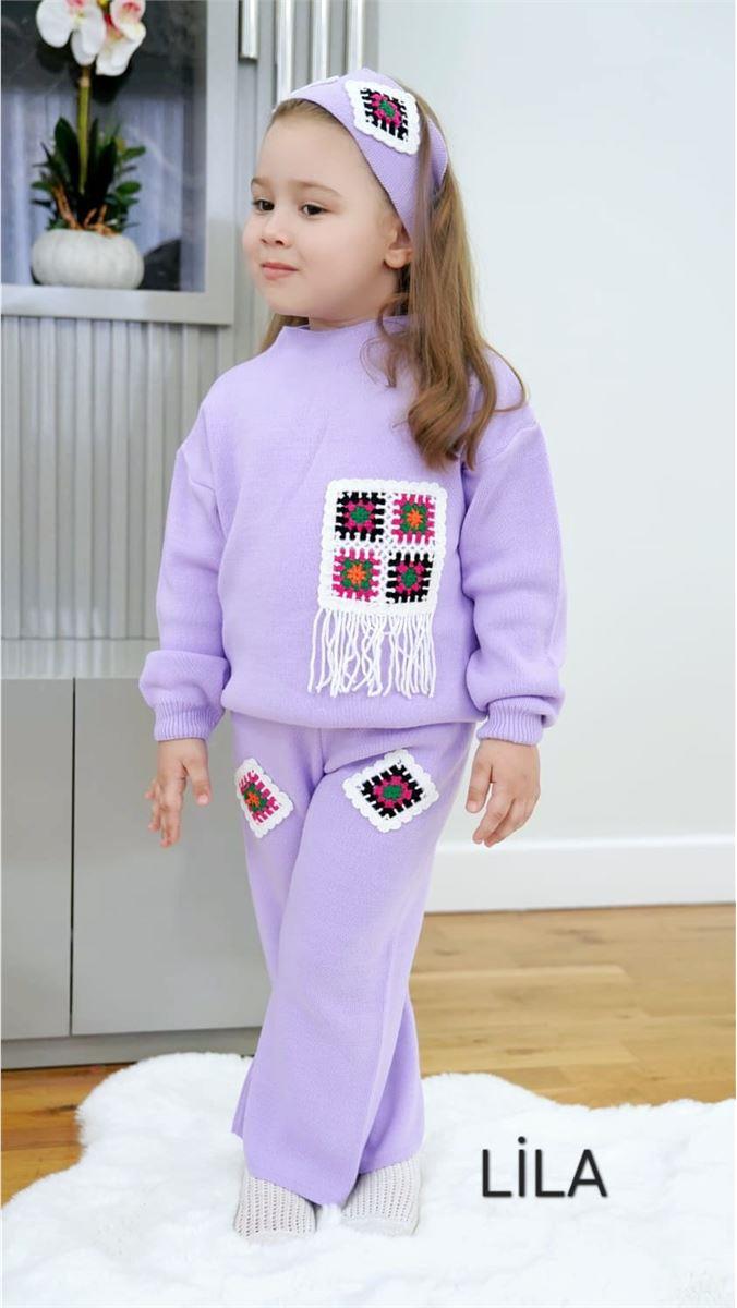 6406 Dantel Motifli Bandanalı Üçlü Takım LİLA