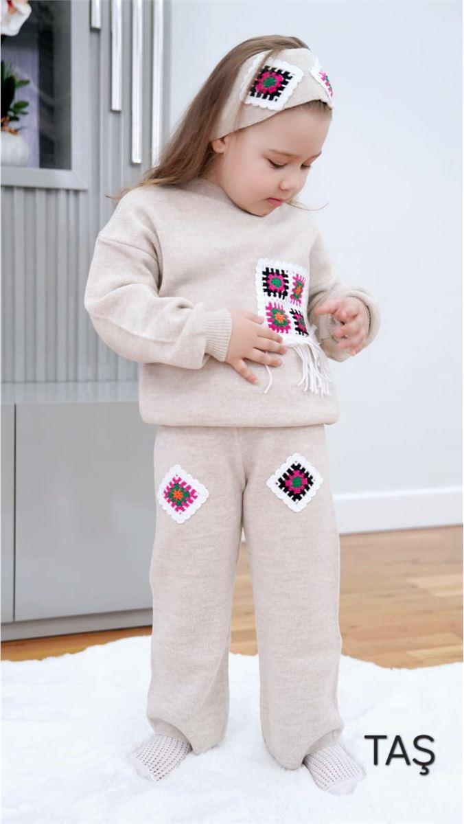 6406 Dantel Motifli Bandanalı Üçlü Takım TAŞ