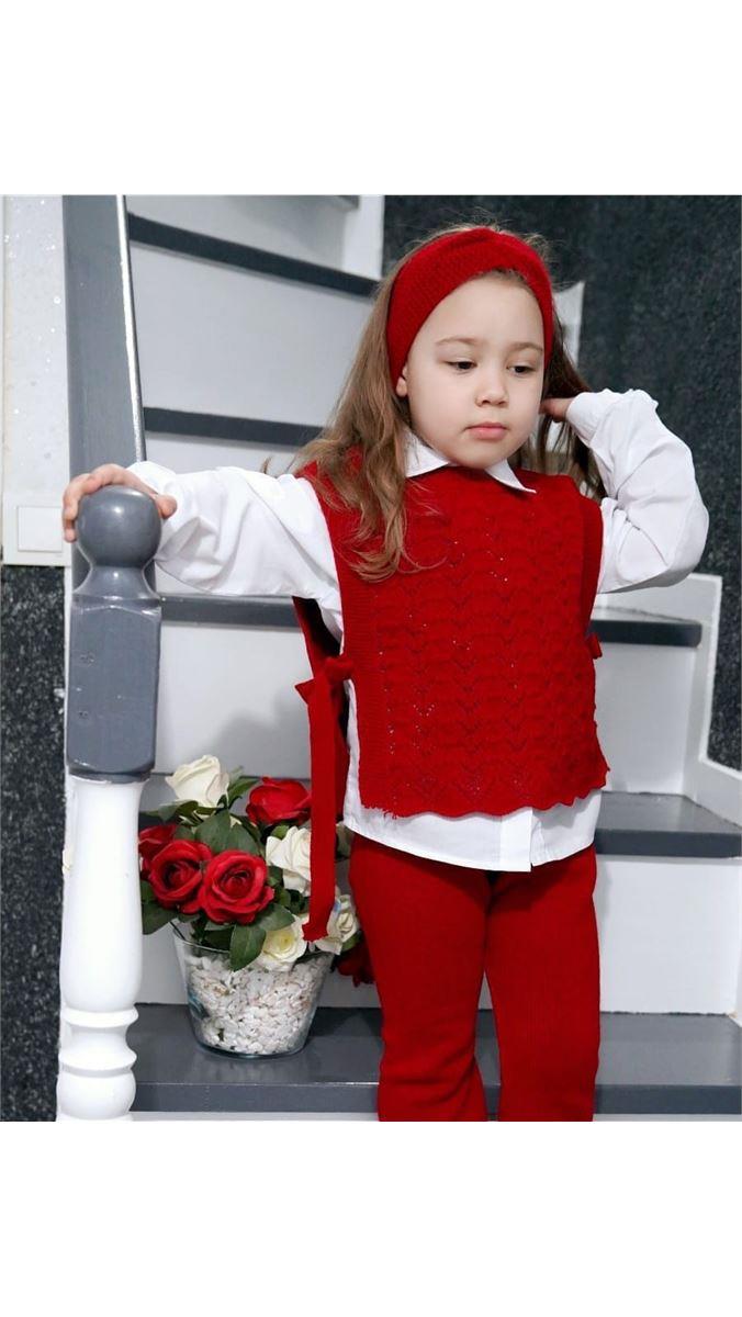 6412 Bandanalı İspanyol Paça Üçlü Takım KIRMIZI