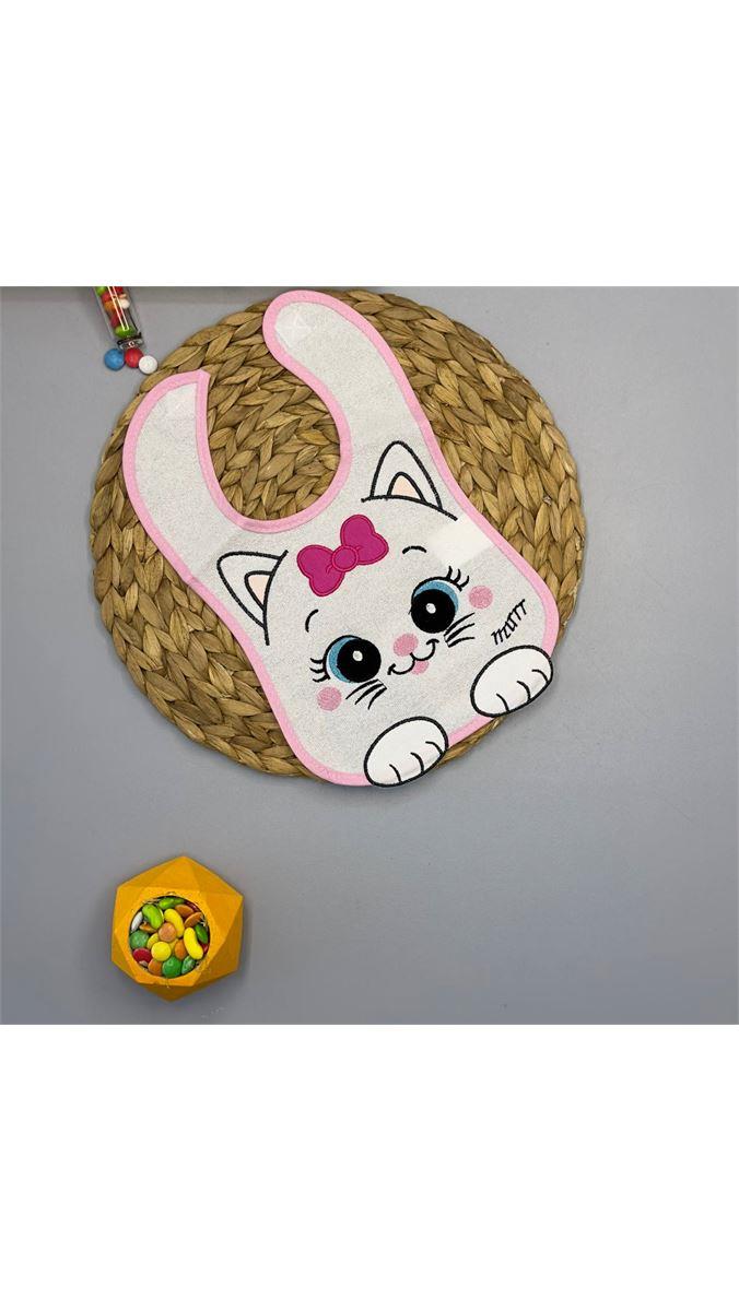 6535 Fiyonklu Kedi Dış Yüzey Pamuk İç Yüzey Poluüret Mama Önlüğü PEMBE