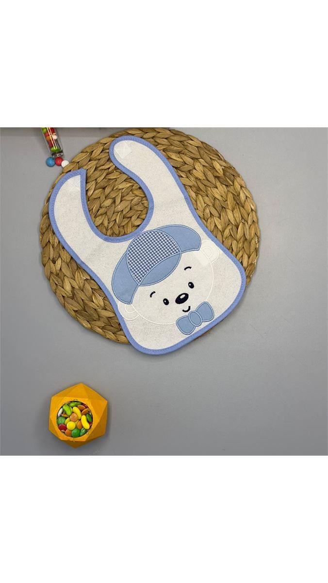 6630 Papyonlu Ayıcık Dış Yüzey Pamuk İç Yüzey Poluüret Mama Önlüğü MAVİ