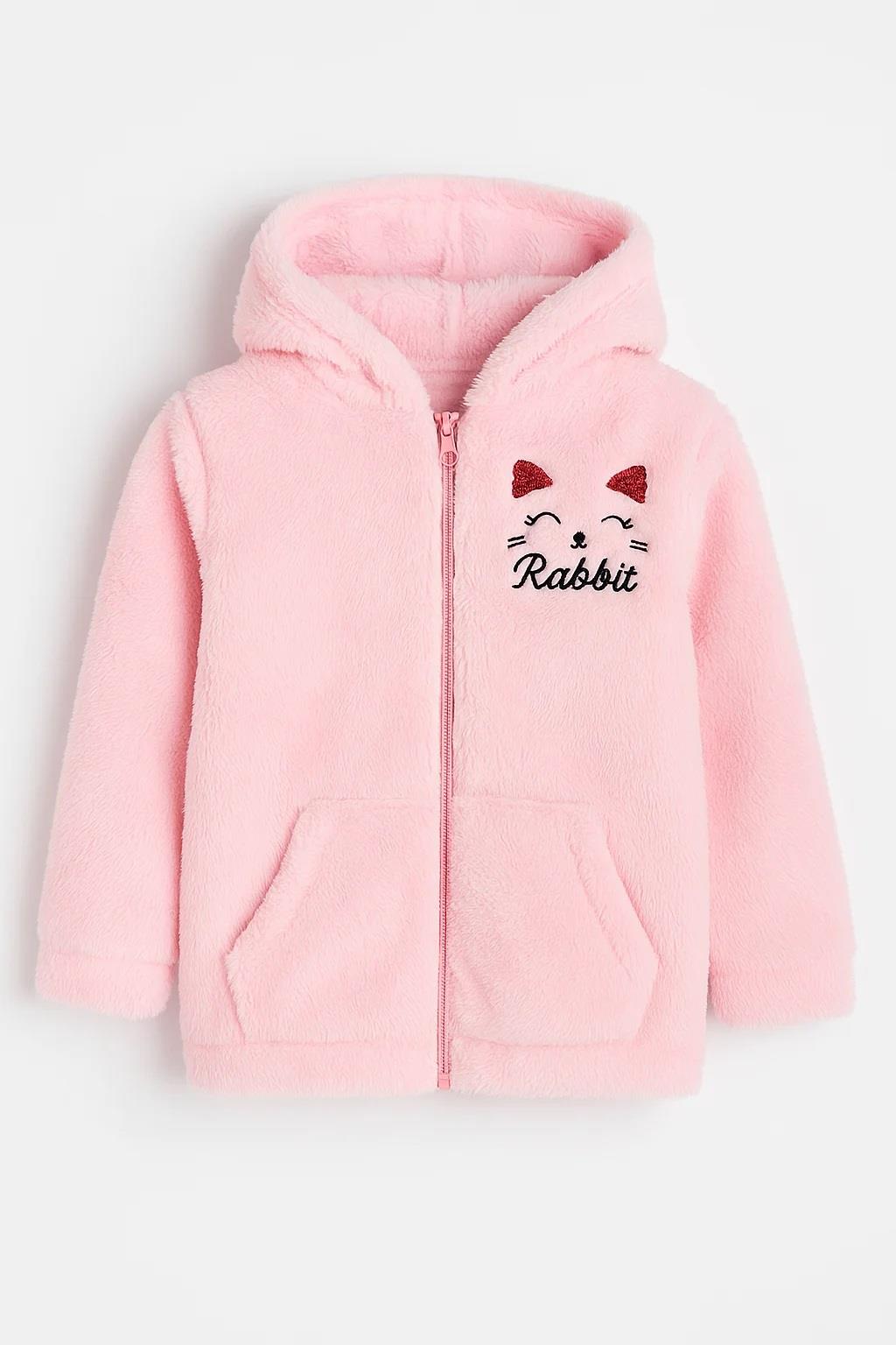 690 Rabbit Nakışlı Peluş Mont PEMBE