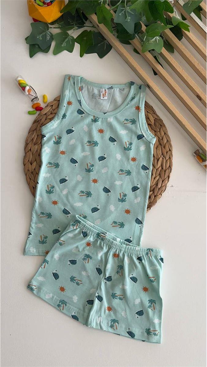 7003 Güneş & Palmiye Desenli Boxer Takım SU YEŞİLİ