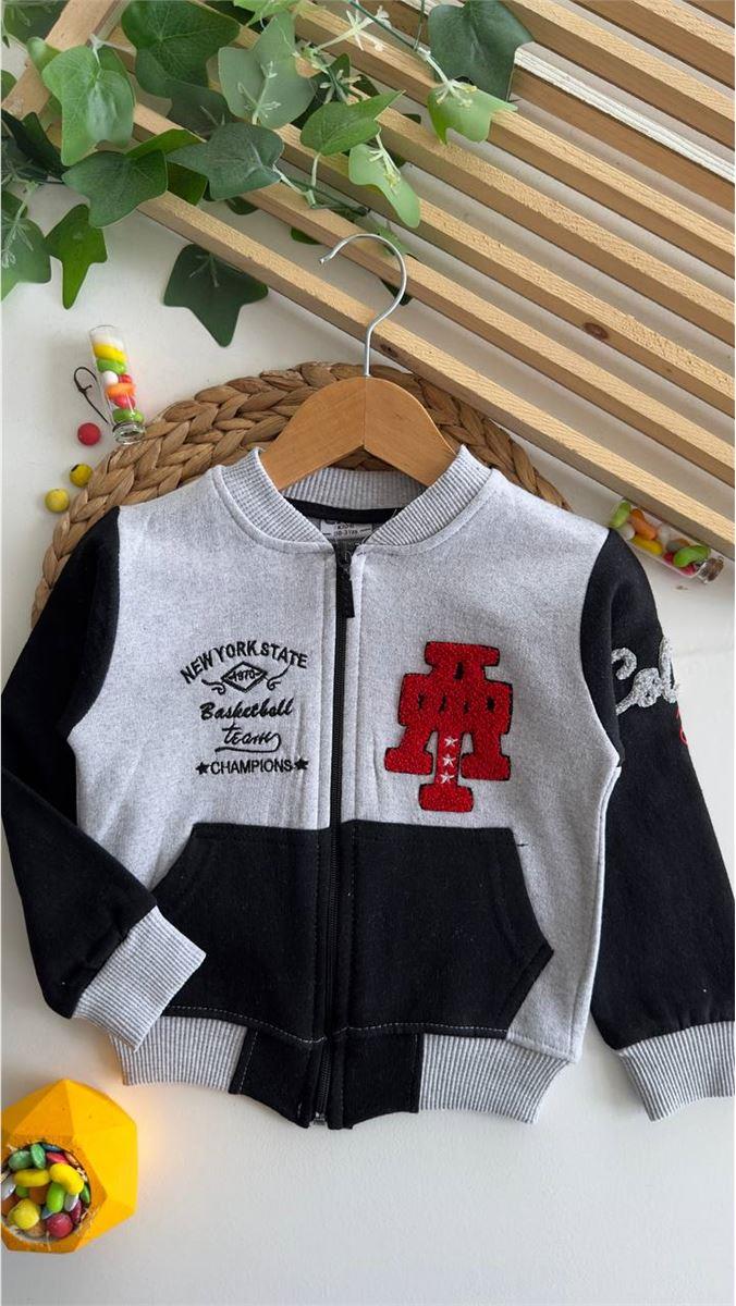 7022 Kabartma Nakışlı Kolej Ceket GRİ