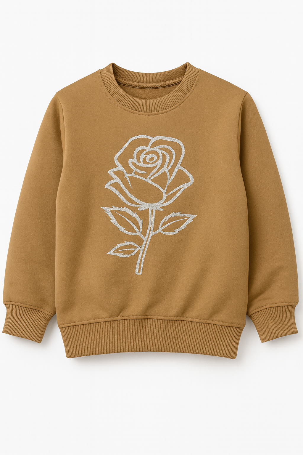 70330 Gül Desenli Kız Çocuk Swetshirt KAHVE