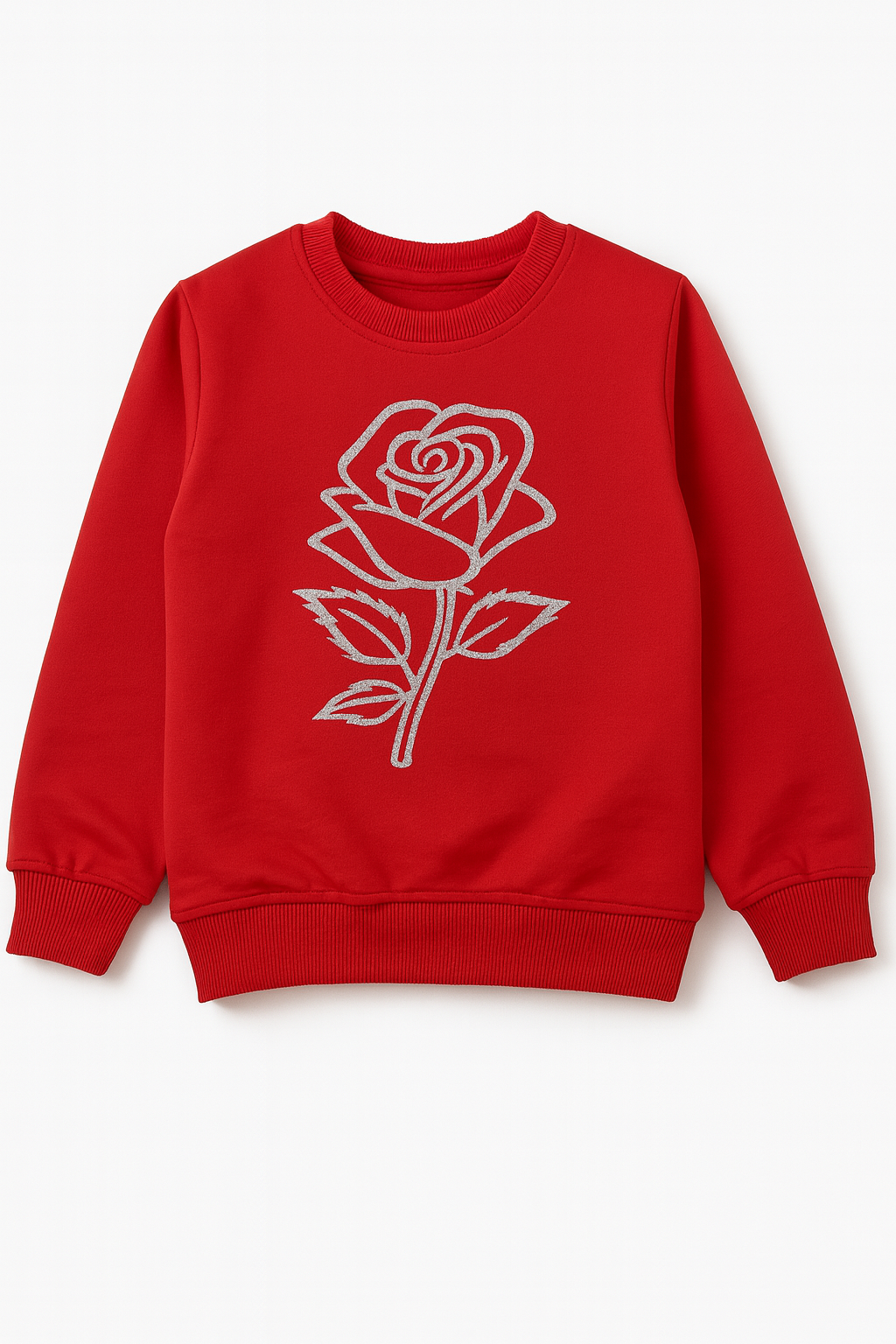 70330 Gül Desenli Kız Çocuk Swetshirt NAR CICEGI