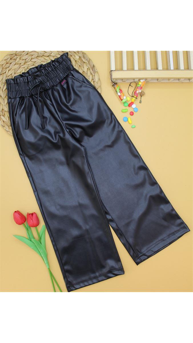 7102 Beli Lastikli Deri Pantolon SİYAH