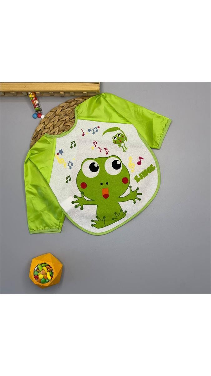 7110 Kurbağa Desenli Dış Yüzey Pamuk İç Yüzey Poluüret Uzun Kollu Mama Önlüğü YEŞİL
