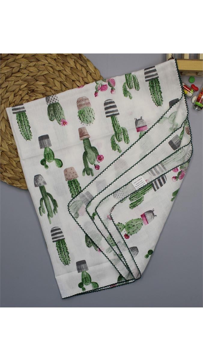 7148-1 Kaktüs Desenli Battaniye BEYAZ