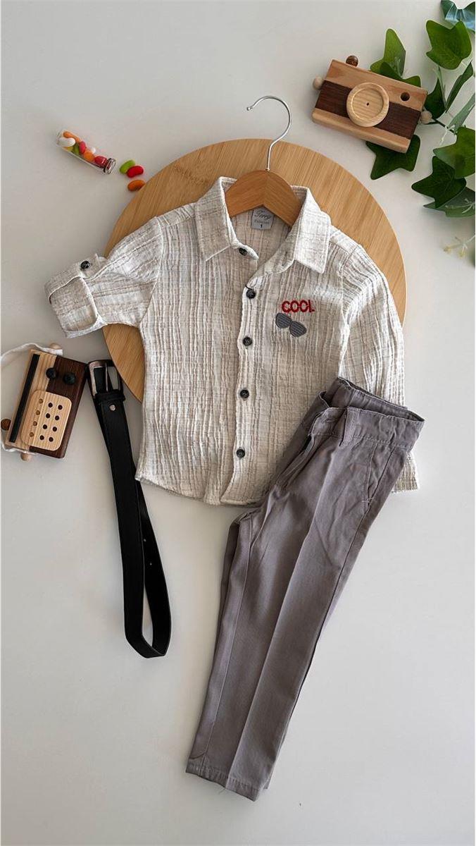 7234 Gofre Gömlekli Üçlü Erkek Takım GRİ