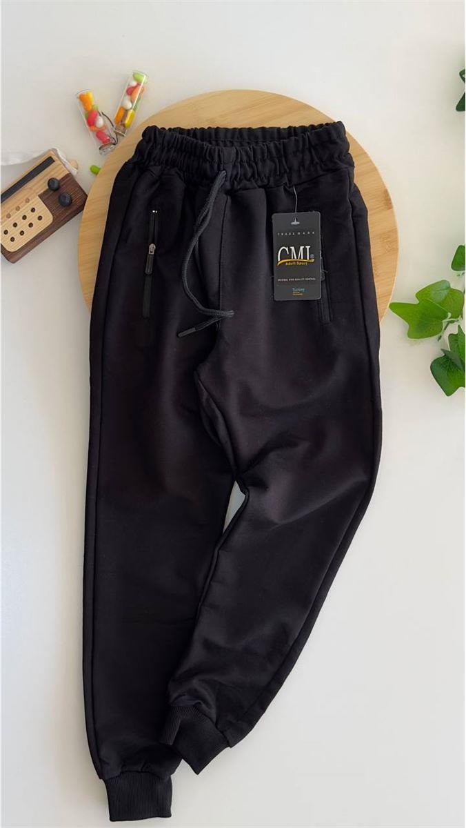 742-1 Ribanalı Kompak Kumaş Fermuarlı Eşofman Altı (5-8 Yaş) SİYAH