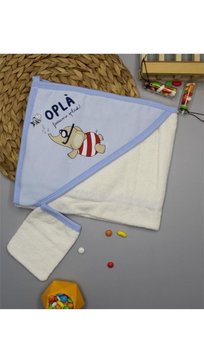 7610 Opla Yazılı Fil Baskılı Havlu MAVİ