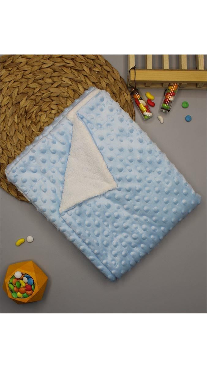 7618 Arka Yüzü Peluş  Nohut Battaniye MAVİ