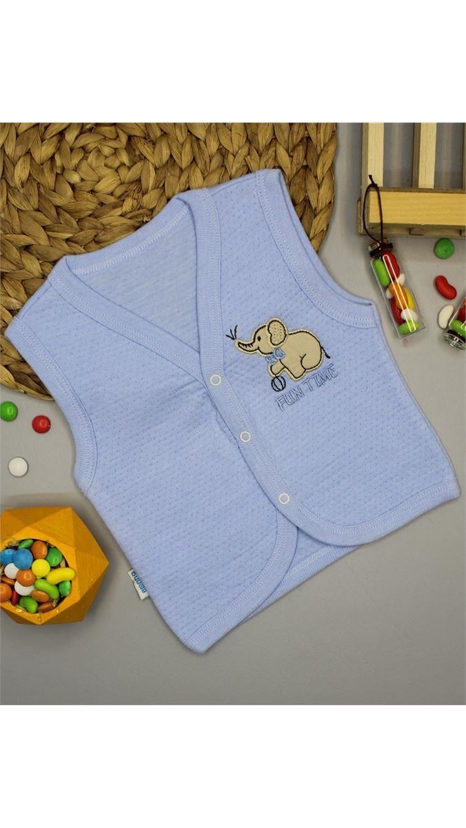 7682 Fil Baskılı Kapitone Yelek MAVİ