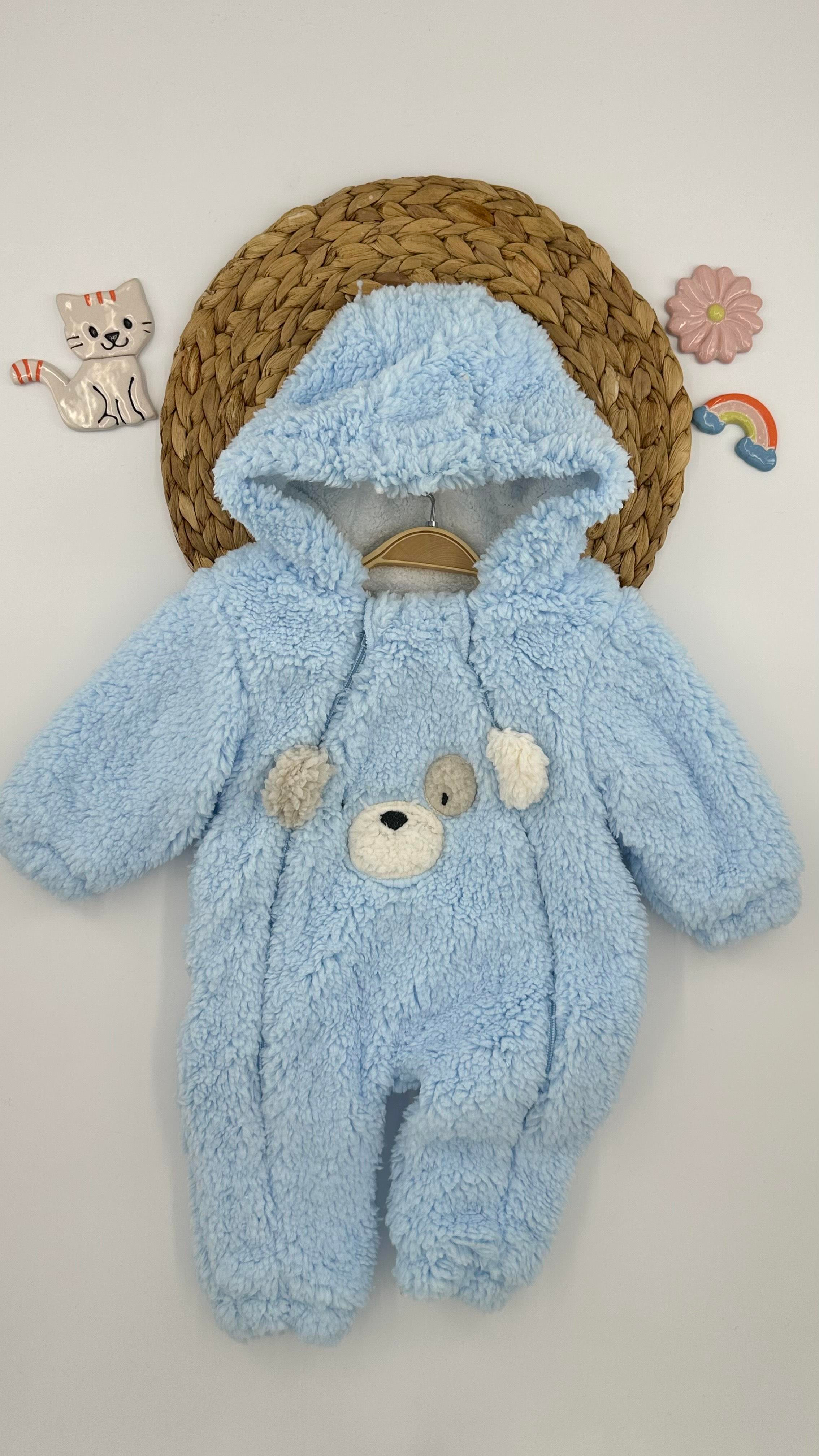 7813 Kulakılı Ayıcık Desenli Tulum MAVİ