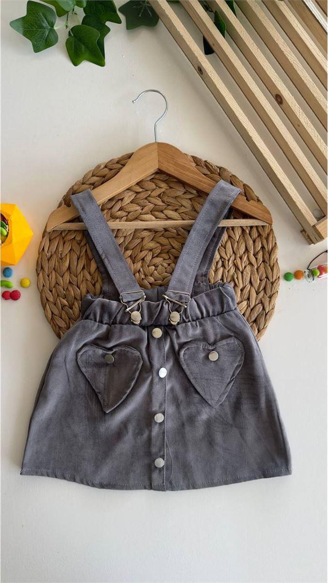 8006 Kalp Cepli Süet Kumaş Etek Salopet FÜME