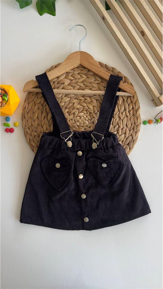 8006 Kalp Cepli Süet Kumaş Etek Salopet SIYAH