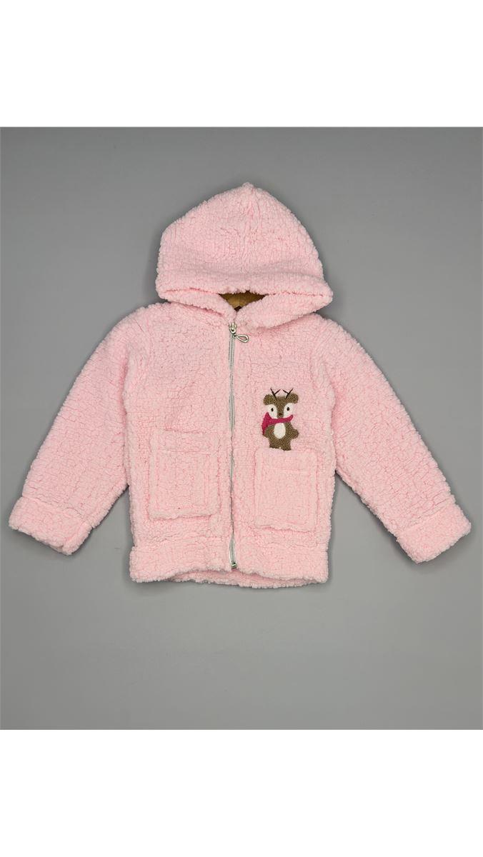 8011 Geyik Nakışlı Peluş Hırka PEMBE 8011 Geyik Nakışlı Peluş Hırka PUDRA