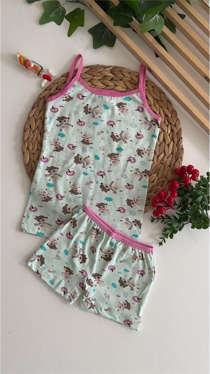 8012 Ceylanı Desenli İp Askılı Şortlu Takım SU YEŞİLİ