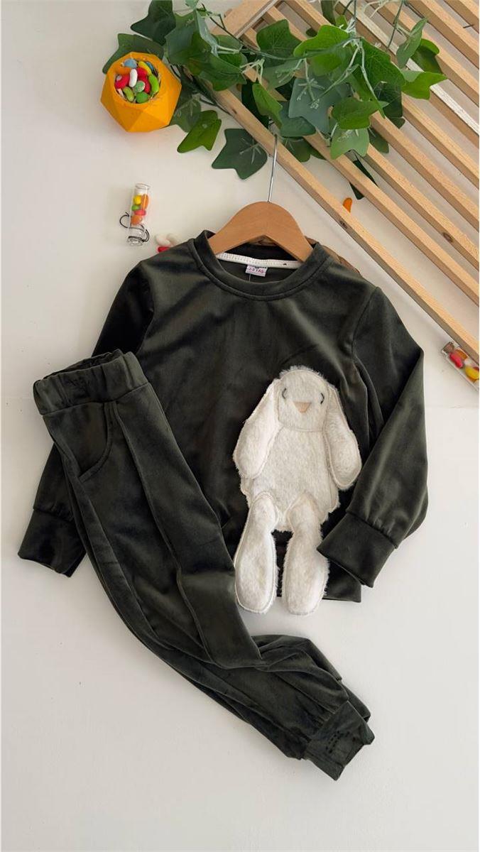8012 Kabartmalı Tavşan Desenli Fransız Kadife Takım YEŞİL