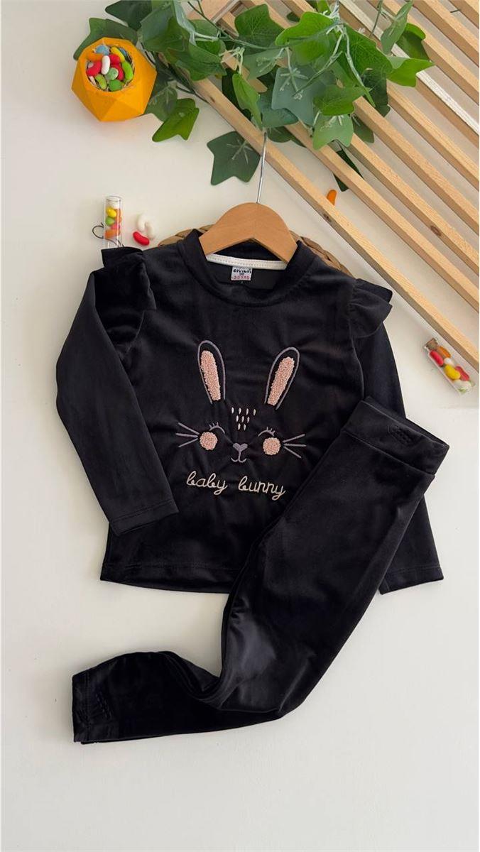 8013 Baby Lunny Dokumalı Fransız Kadife Takım SIYAH