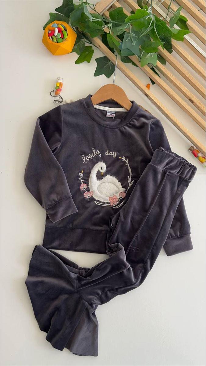 8015 Kuğu Kabartmalı Fransız Kadife Takım FÜME