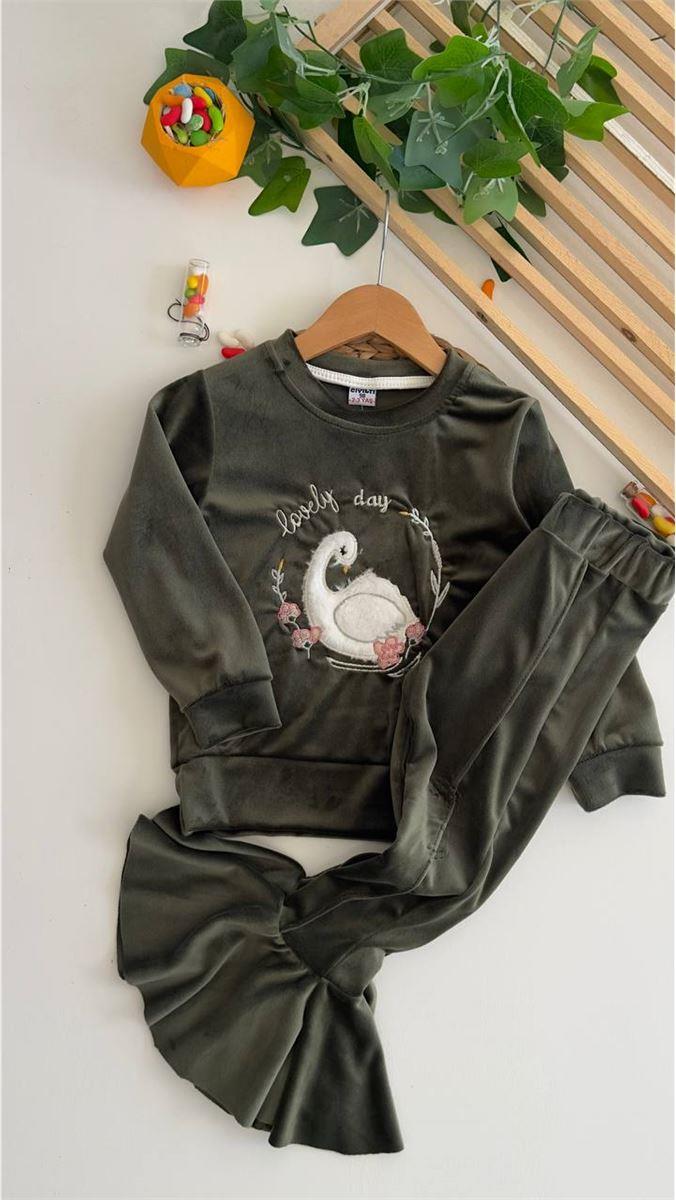 8015 Kuğu Kabartmalı Fransız Kadife Takım YEŞİL