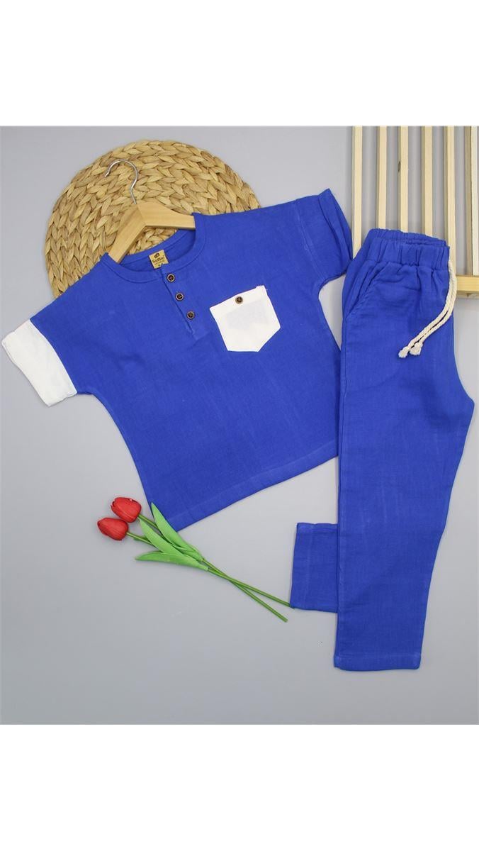 8042-1 Muslin Kol Parçalı Patlı Takım MAVİ