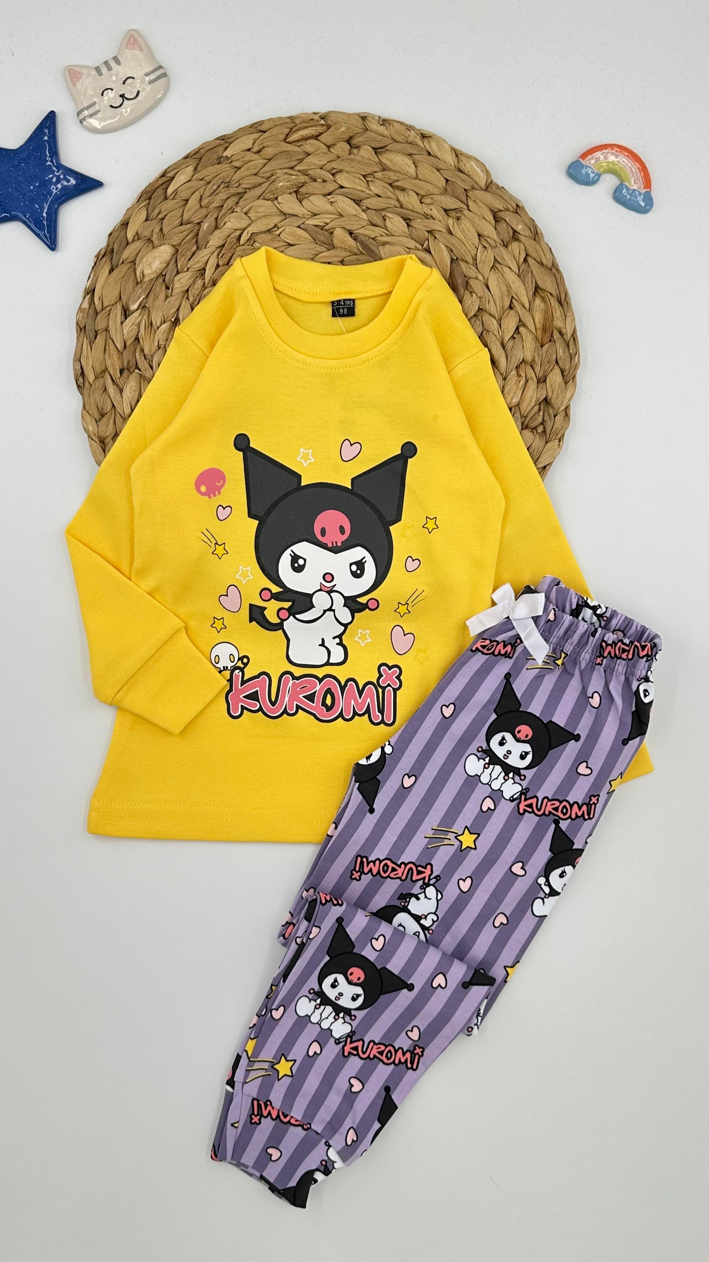 8211 Kuromi Desenli Kız Çocuk Pijama Takımı SARI