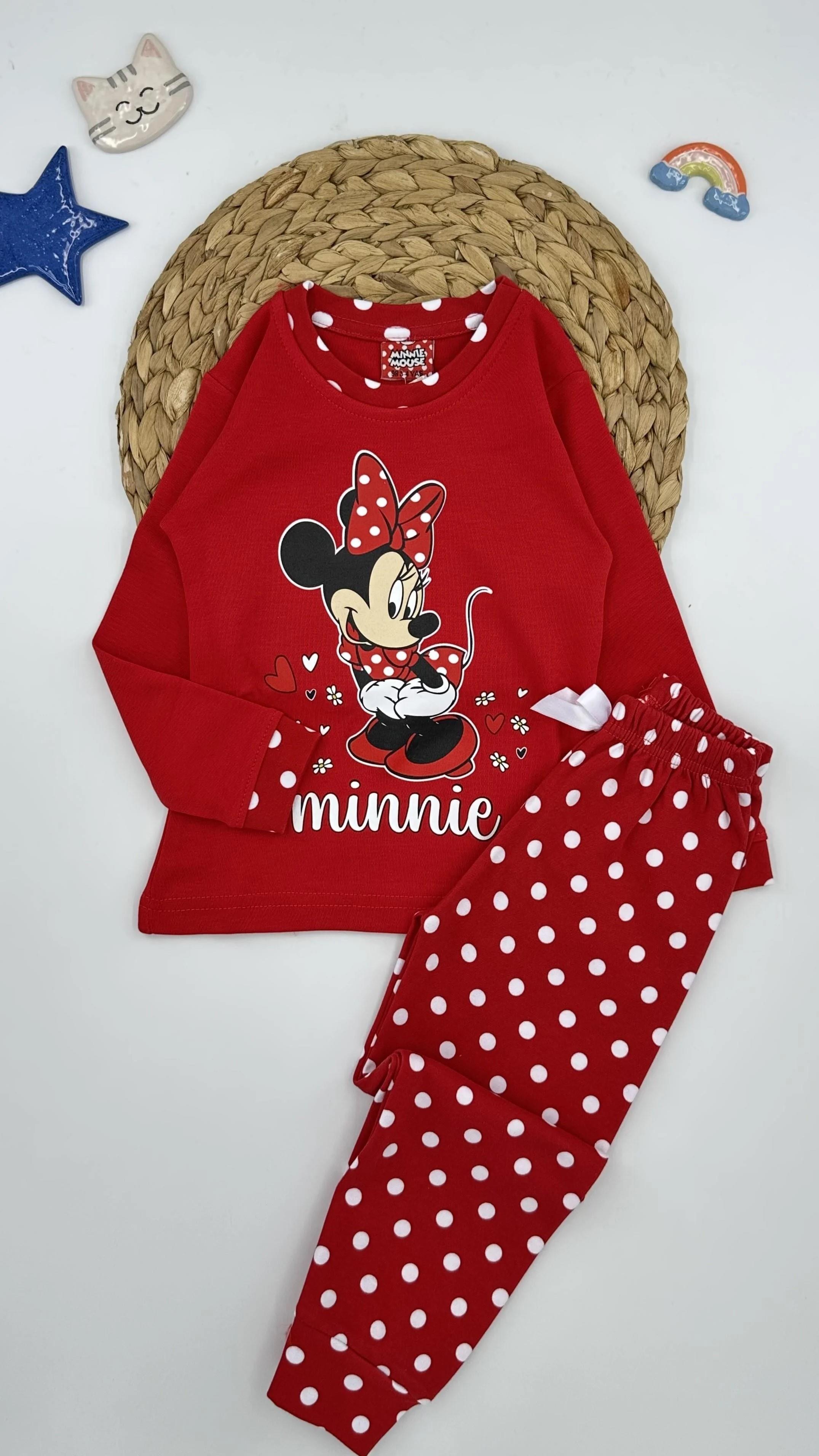 8227 Mickey Mouse Desenli Kız Çocuk Pijama Takımı KIRMIZI
