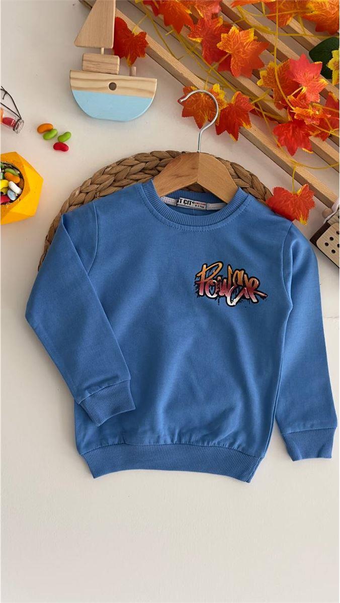 8367 Power Baskılı Erkek Sweat MAVİ