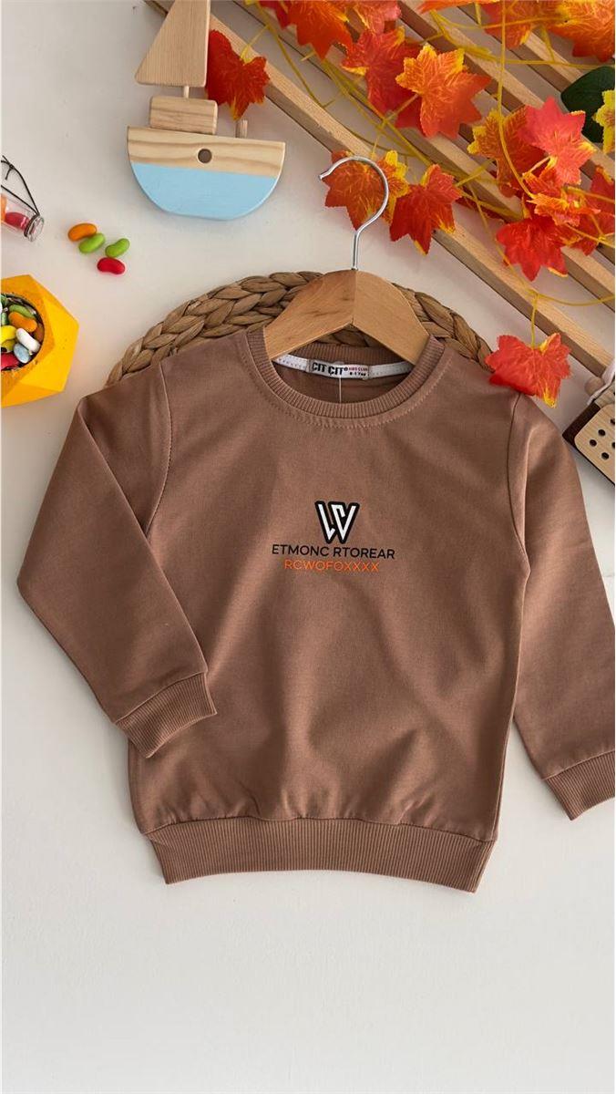 8370 W Baskılı Erkek Sweat KAHVERENGİ