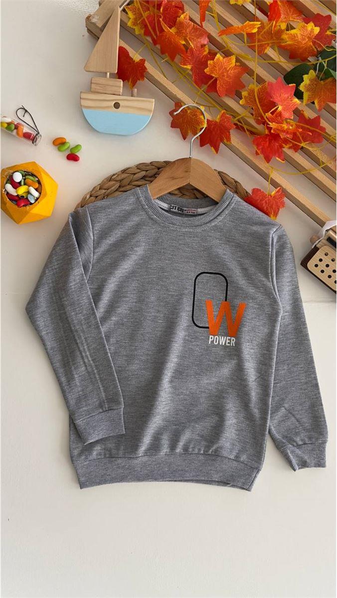 8374-75 W Power Baskılı Erkek Sweat GRİ