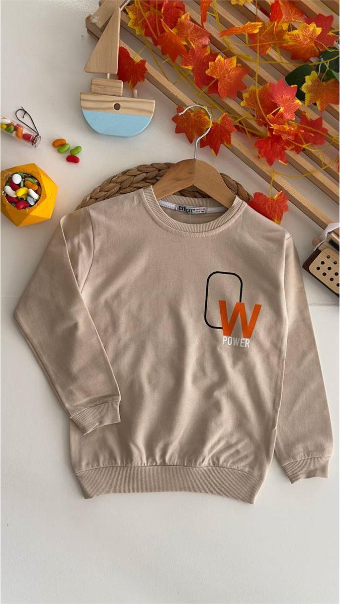 8374-75 W Power Baskılı Erkek Sweat KREM