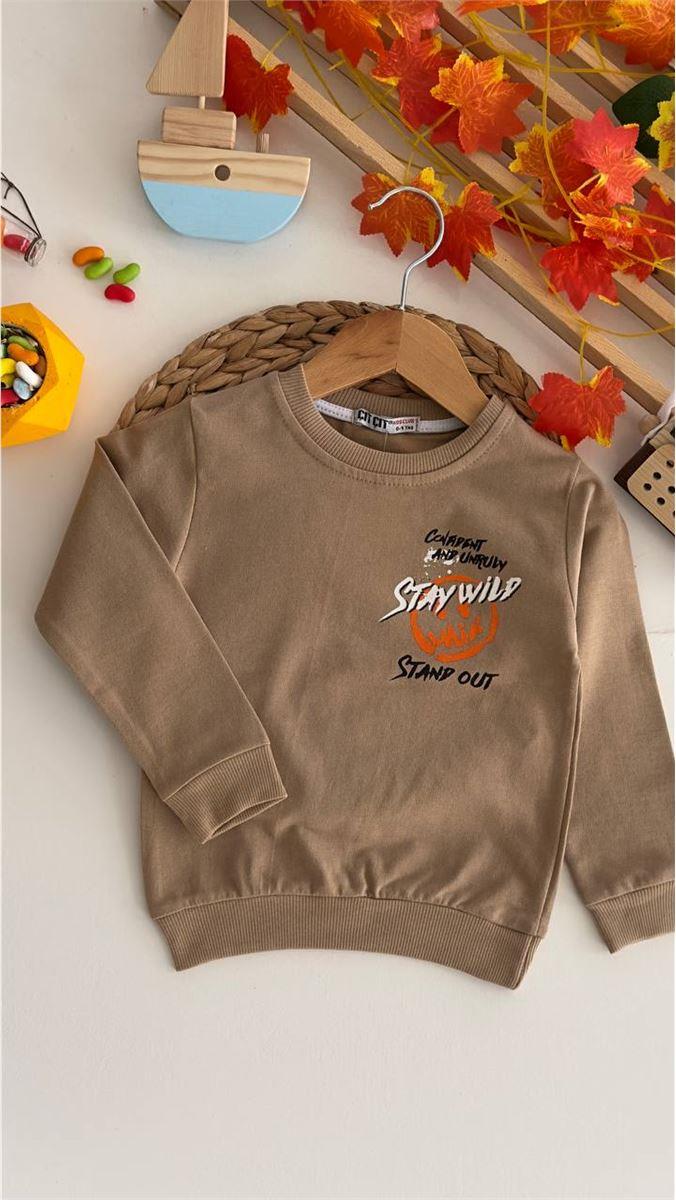 8376 Stay Wild Baskılı Erkek Sweat KAHVE