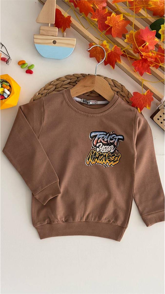 8379 Trust Baskılı Erkek Sweat KAHVERENGİ