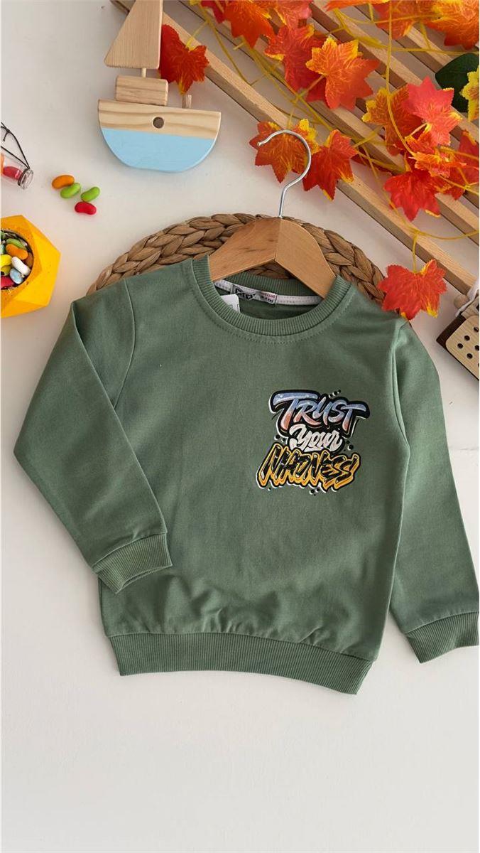 8379 Trust Baskılı Erkek Sweat YEŞİL