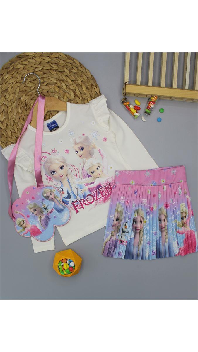 9500-2 Elsa Frozen Çantalı Üçlü Takım PEMBE