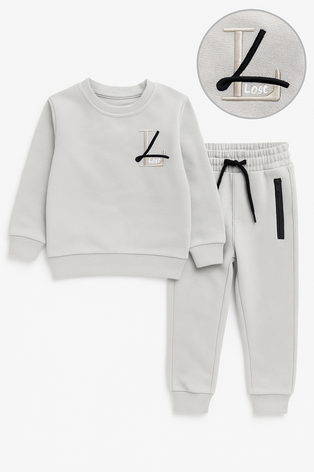 9941-4 Baskılı İki İplik Şardonlu Erkek Çocuk Takım GRİ