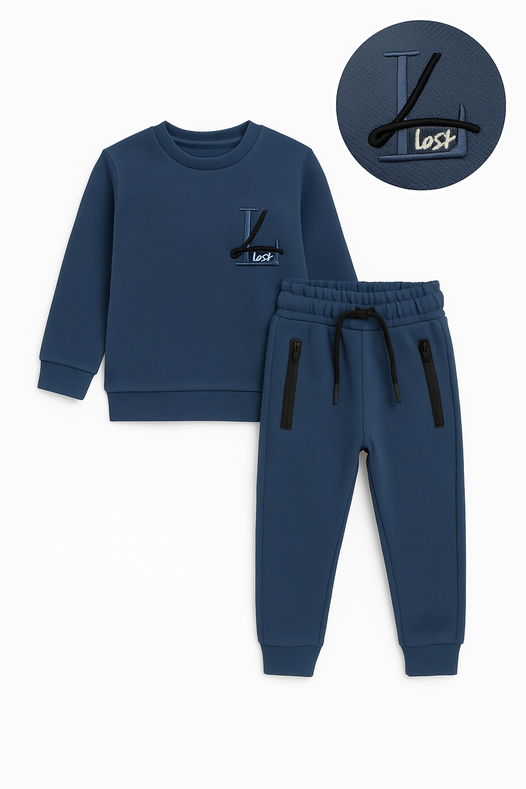 9941-4 Baskılı İki İplik Şardonlu Erkek Çocuk Takım MAVİ