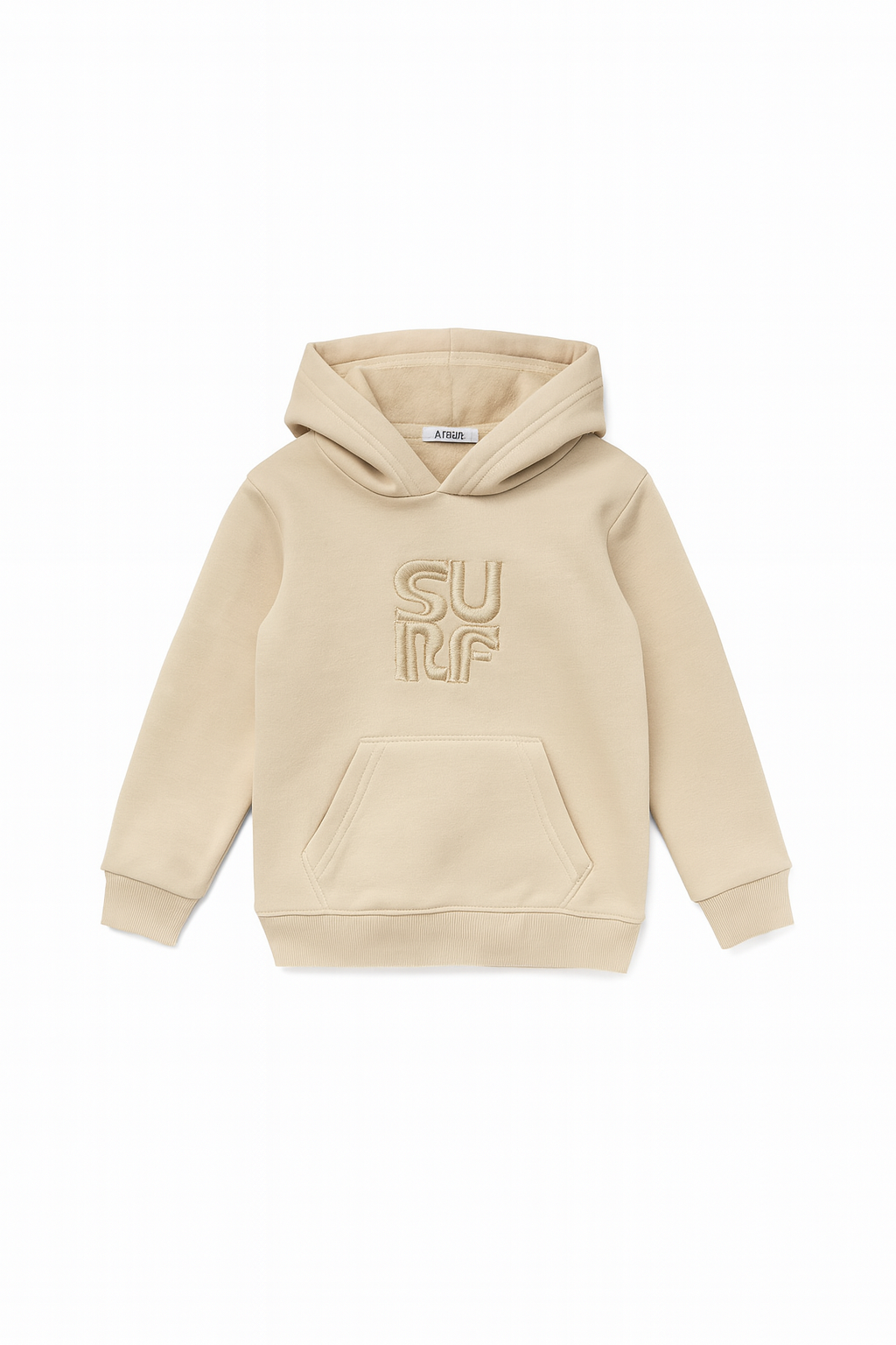 9989 Surf İşlemeli Kapişonlu Şardonlu Sweat (13-16 Yaş) TAŞ